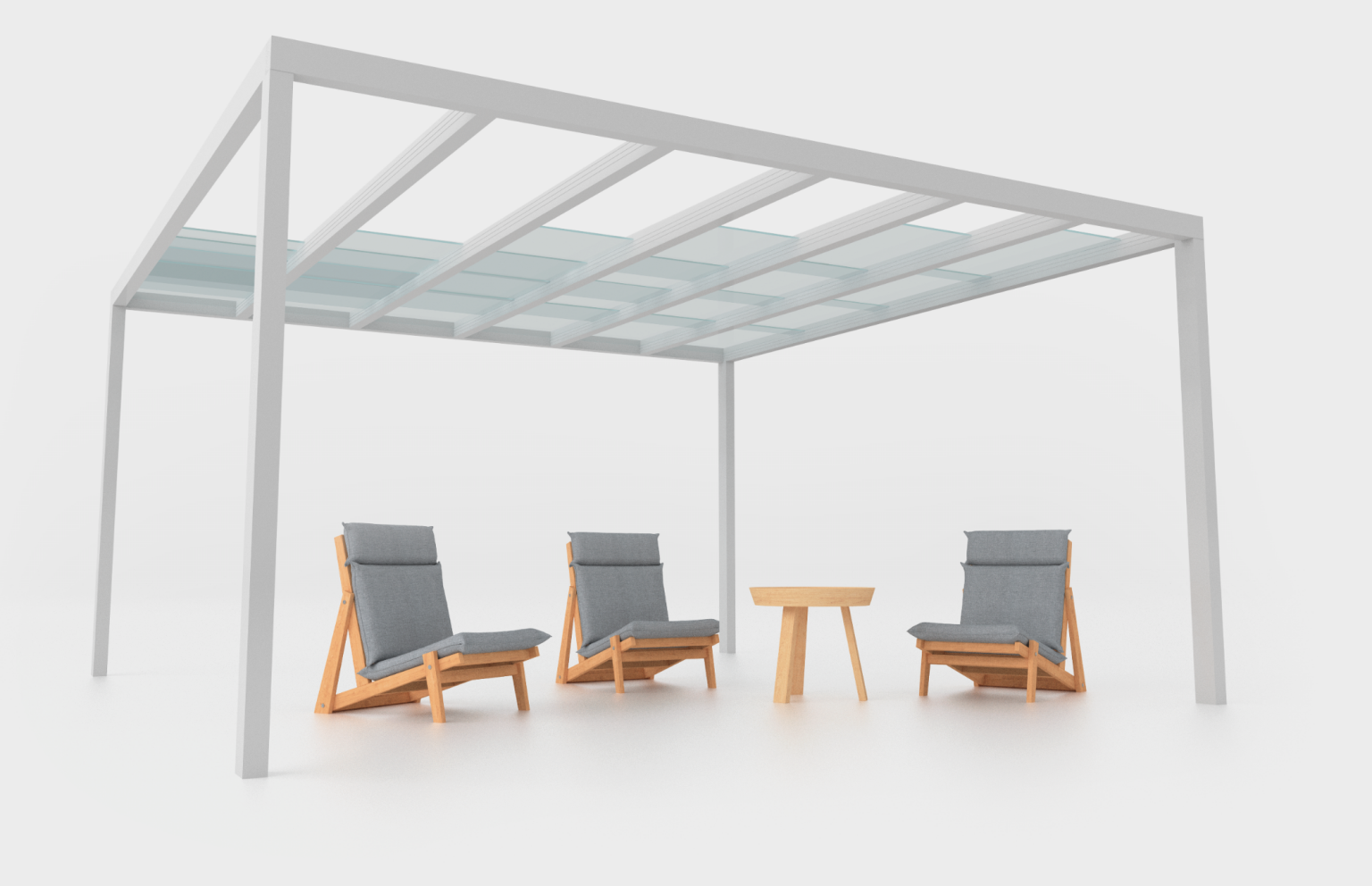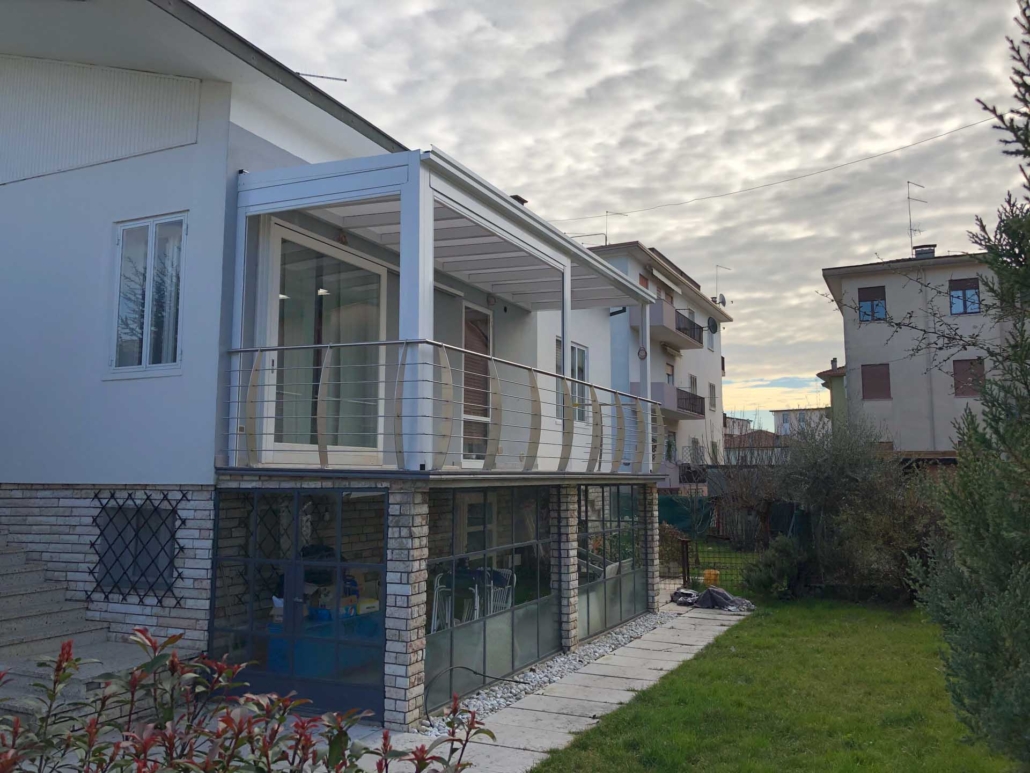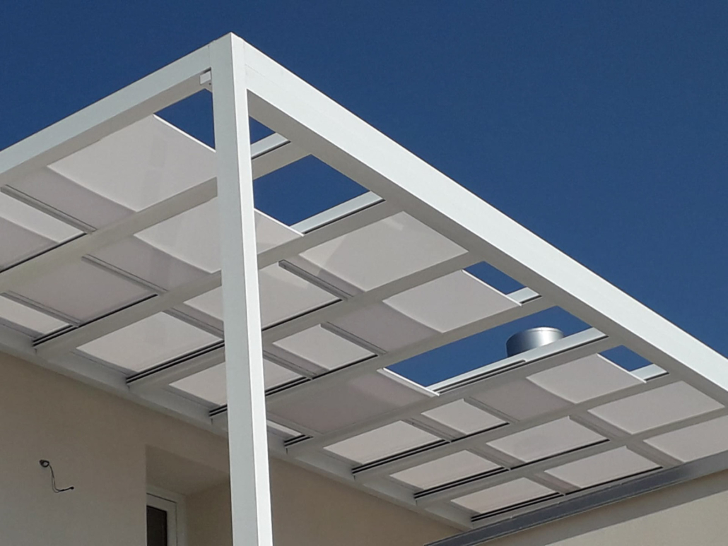 con lastre scorrevoli manualmente ad impacchettamento, rientra nelle opere libere da cubatura. A seconda delle esigenze, le lastre possono essere aperte per garantire il passaggio della luce solare o chiuse per ritrovare sollievo all’ombra.